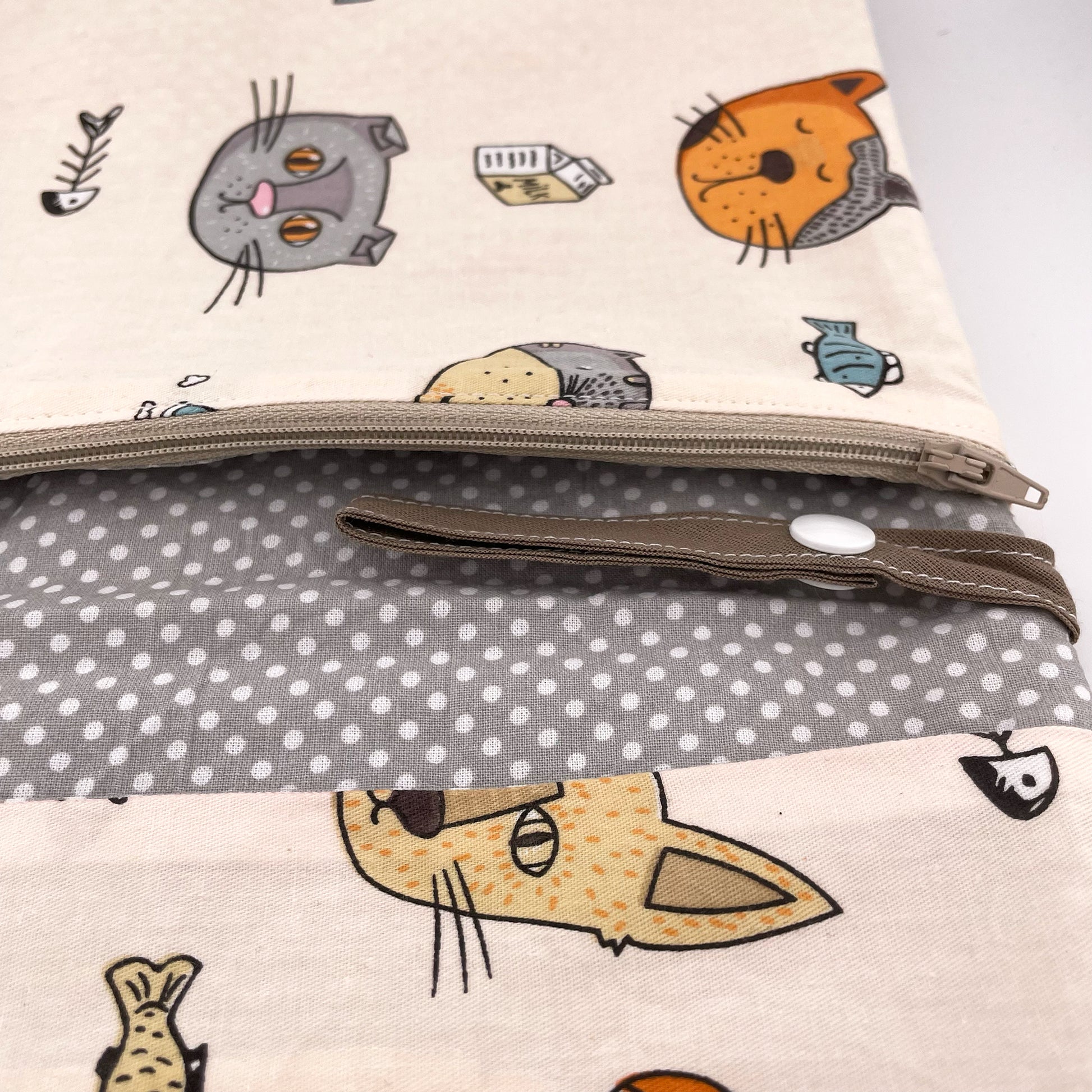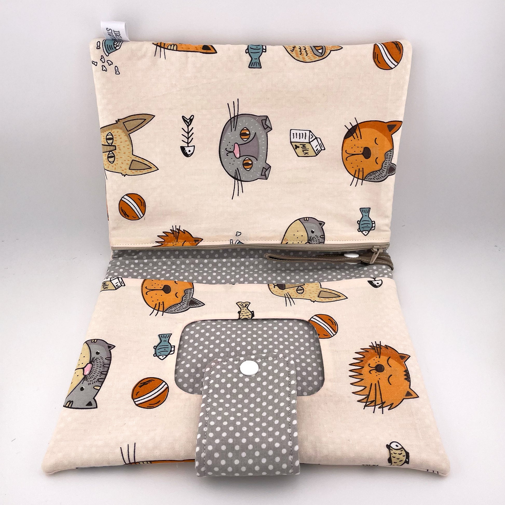 Questo pratico multitasca portapannolini ha uno scomparto per le salviette umidificate, asola portaciuccio (che eventualmente può essere usata per attaccare il multitasca al passeggino), tasca con cerniera per un cambio e tasca libera per pannolini. Perfetto per portare con sè tutto il necessario per il cambio del tuo bambino in ogni occasione. La chiusura è con bottone automatico ed è realizzato completamente a mano in cotone leggermente imbottito.