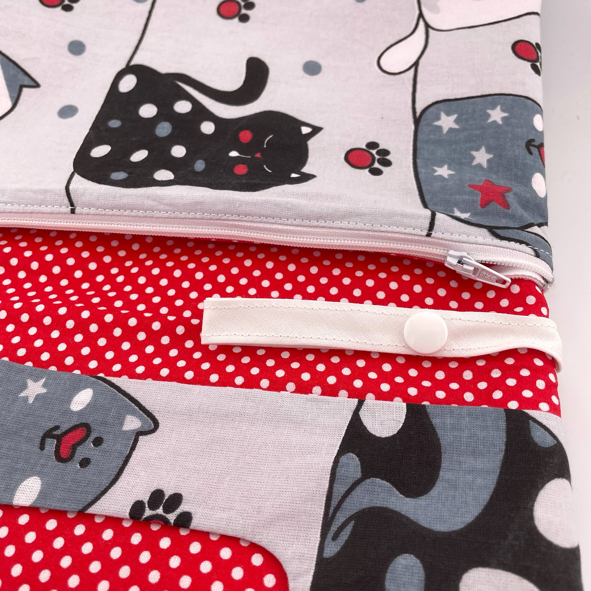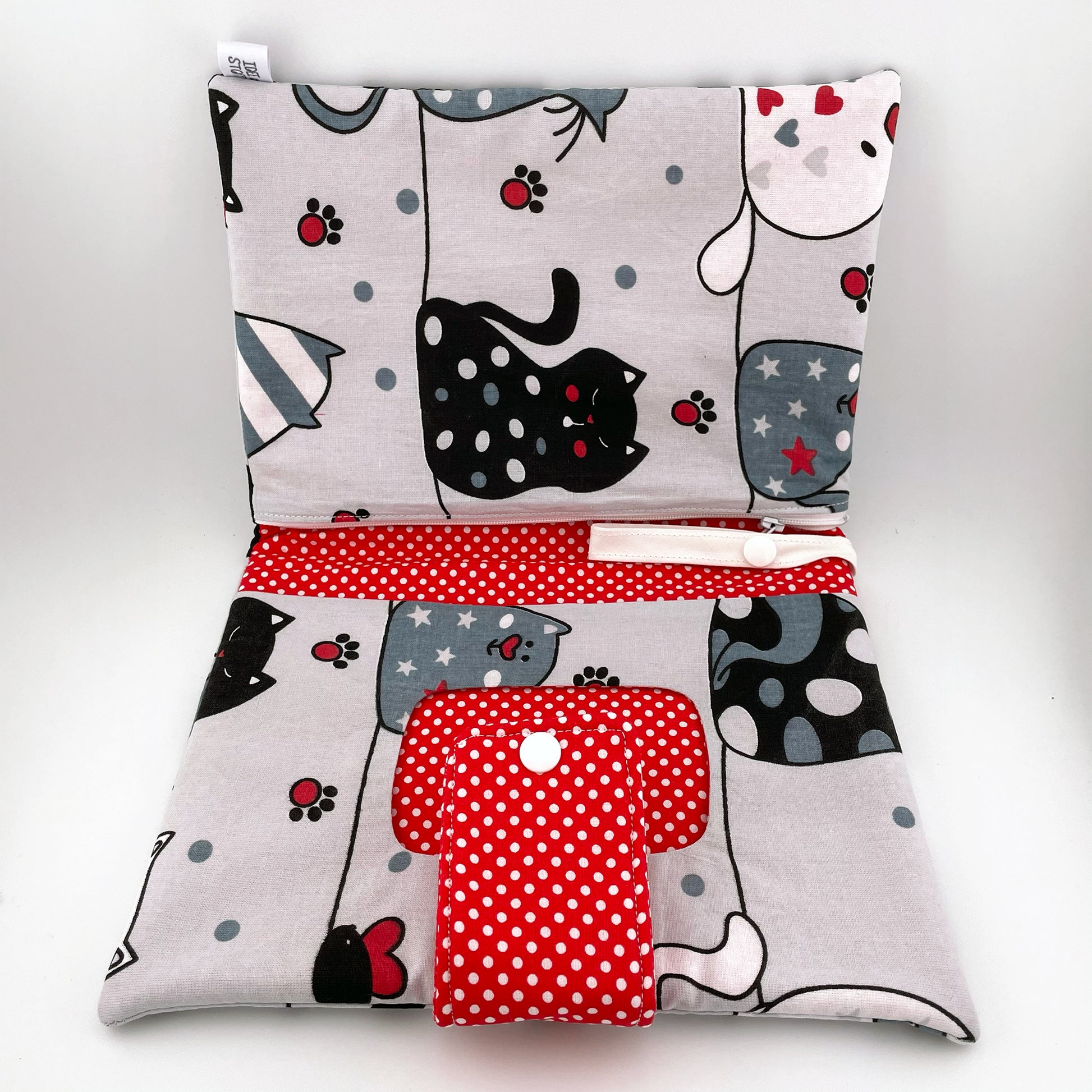 Questo pratico multitasca portapannolini ha uno scomparto per le salviette umidificate, asola portaciuccio (che eventualmente può essere usata per attaccare il multitasca al passeggino), tasca con cerniera per un cambio e tasca libera per pannolini. Perfetto per portare con sè tutto il necessario per il cambio del tuo bambino in ogni occasione. La chiusura è con bottone automatico ed è realizzato completamente a mano in cotone leggermente imbottito.