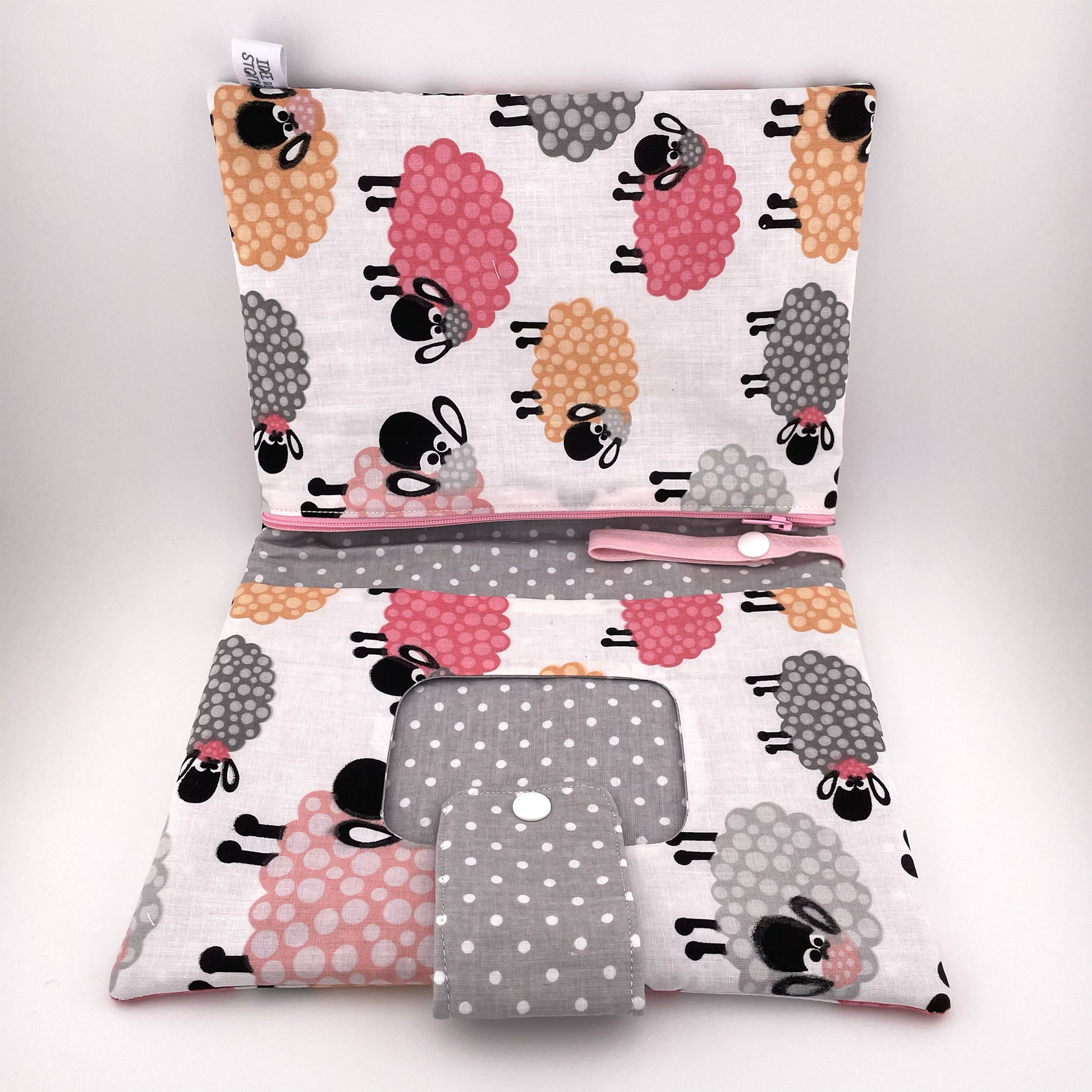 Questo pratico multitasca portapannolini ha uno scomparto per le salviette umidificate, asola portaciuccio (che eventualmente può essere usata per attaccare il multitasca al passeggino), tasca con cerniera per un cambio e tasca libera per pannolini. Perfetto per portare con sè tutto il necessario per il cambio del tuo bambino in ogni occasione. La chiusura è con bottone automatico ed è realizzato completamente a mano in cotone leggermente imbottito.