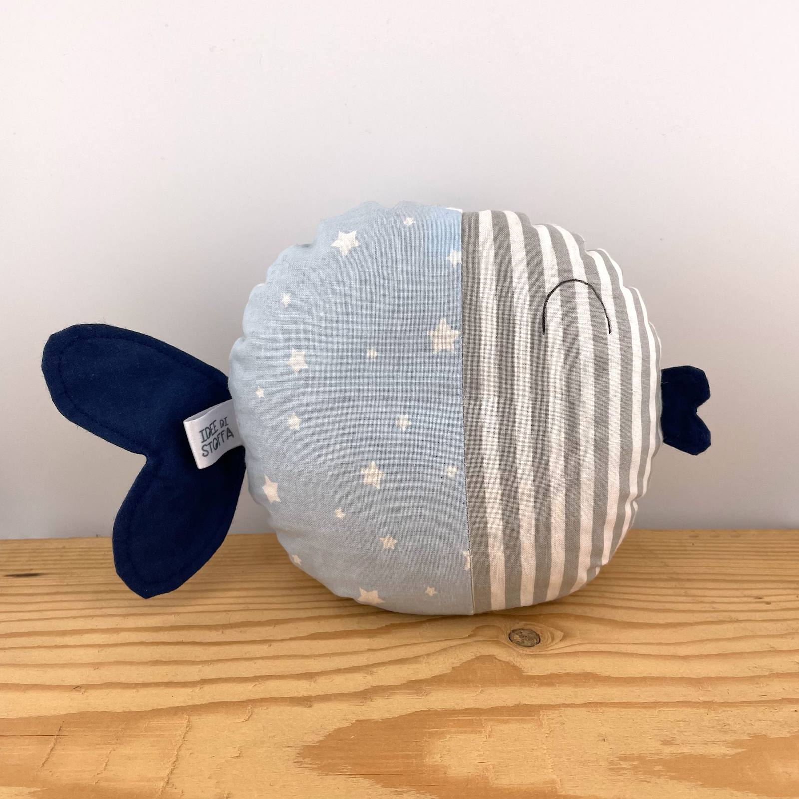 Simpatico pesciolino imbottito con la pula di farro e adatto ad essere riscaldato o raffreddato secondo la necessità. Il cuscino caldo è adatto per dare sollievo al pancino e anche per riscaldare il lettino o la culla anche per alleviare le colichette. Il pesce è fatto completamente a mano, in cotone fantasia. La pula di farro al suo interno lo rende morbido ed è un materiale naturale.